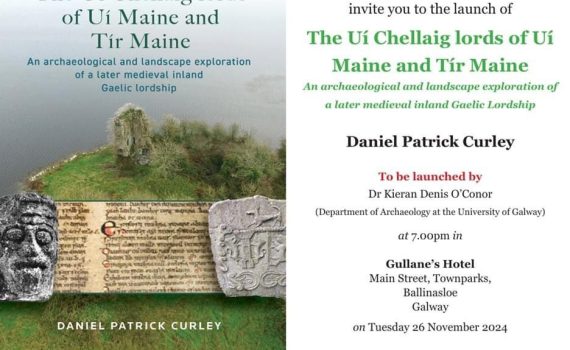 An archaeological and landscape exploration of a later medieval inland Gaelic lordship. By Daniel Patrick Curley To be launched by Dr Kieran Denis O’Conor(Department of Archaeology at the University of Galway) 7.00pm in Gullane’s Hotel Main Street, Townparks, Ballinasloe Galway on Tuesday 26 November 2024